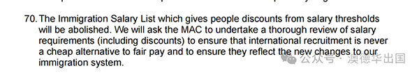 • 白皮书第70条明确immigration salary list会被取消,包括毕业生折扣会被review,然后salary threshold会再上调。